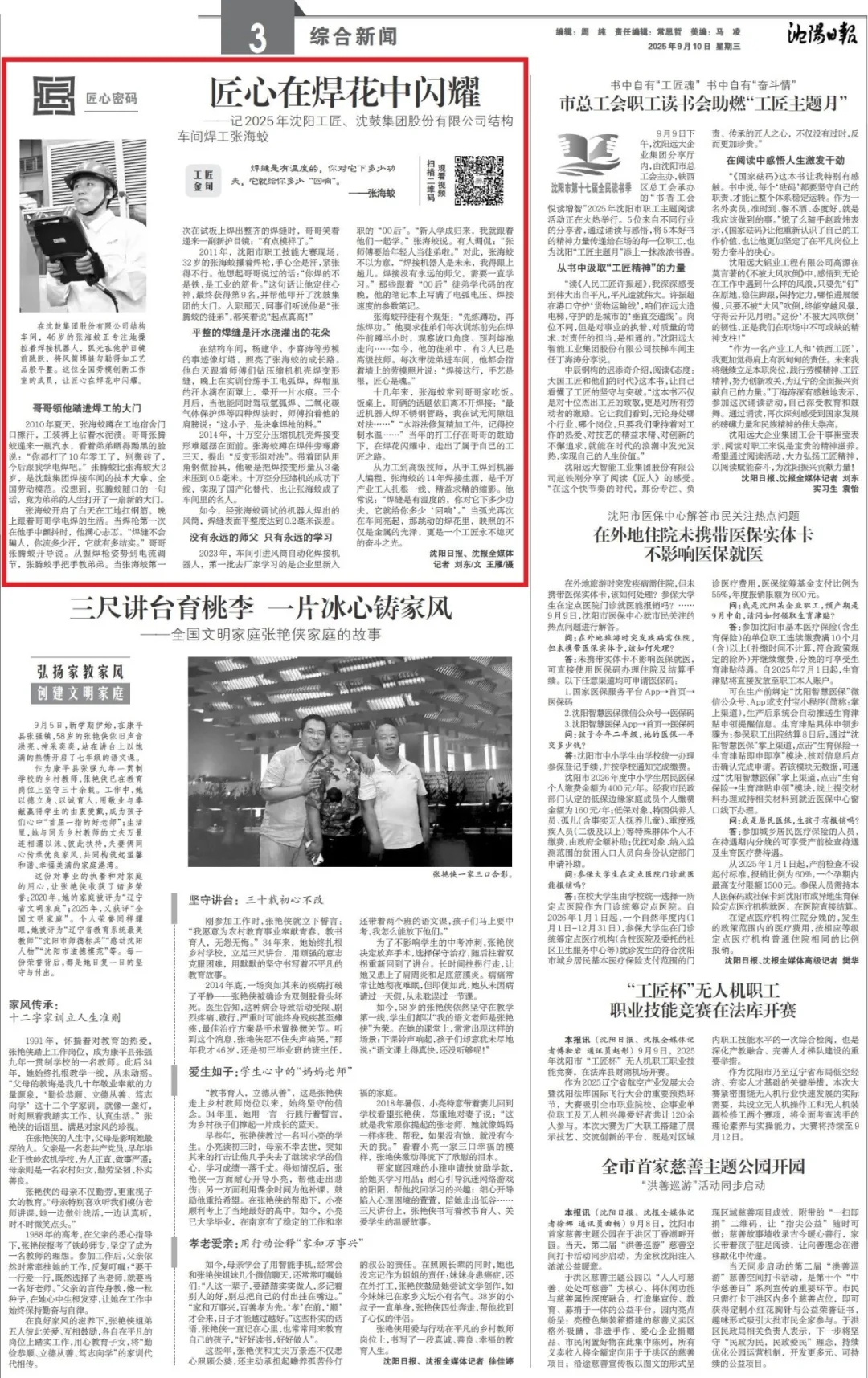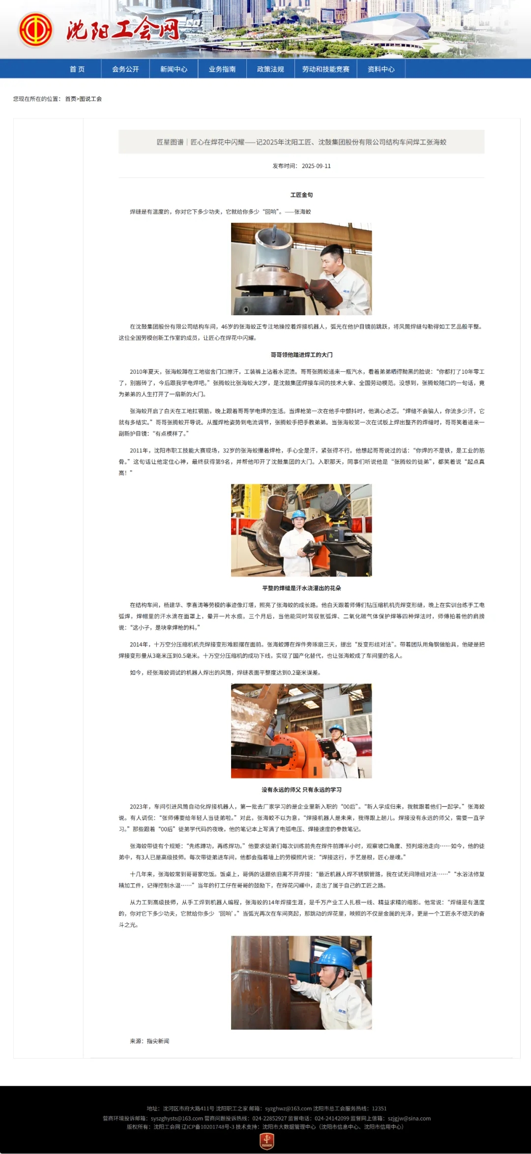 9月10日,《沈陽日報(bào)》以《匠心在焊花中閃耀》為題,報(bào)道我集團(tuán)結(jié)構(gòu)車間焊工張海蛟的事跡;沈陽工會網(wǎng)同步在《匠星圖譜|匠心在焊花中閃耀——記2025年沈陽工匠、沈鼓集團(tuán)股份有限公司結(jié)構(gòu)車間焊工張海蛟》中,深度解讀其“沈陽工匠”的成長之路。報(bào)道均提到,張海蛟在焊接崗位上深耕細(xì)作,以精湛技藝攻克多項(xiàng)技術(shù)難題,用焊花“焊”出高質(zhì)量產(chǎn)品,其堅(jiān)守與創(chuàng)新,正是沈鼓“工匠精神”的生動體現(xiàn),也為沈陽產(chǎn)業(yè)工人隊(duì)伍建設(shè)樹立了榜樣。