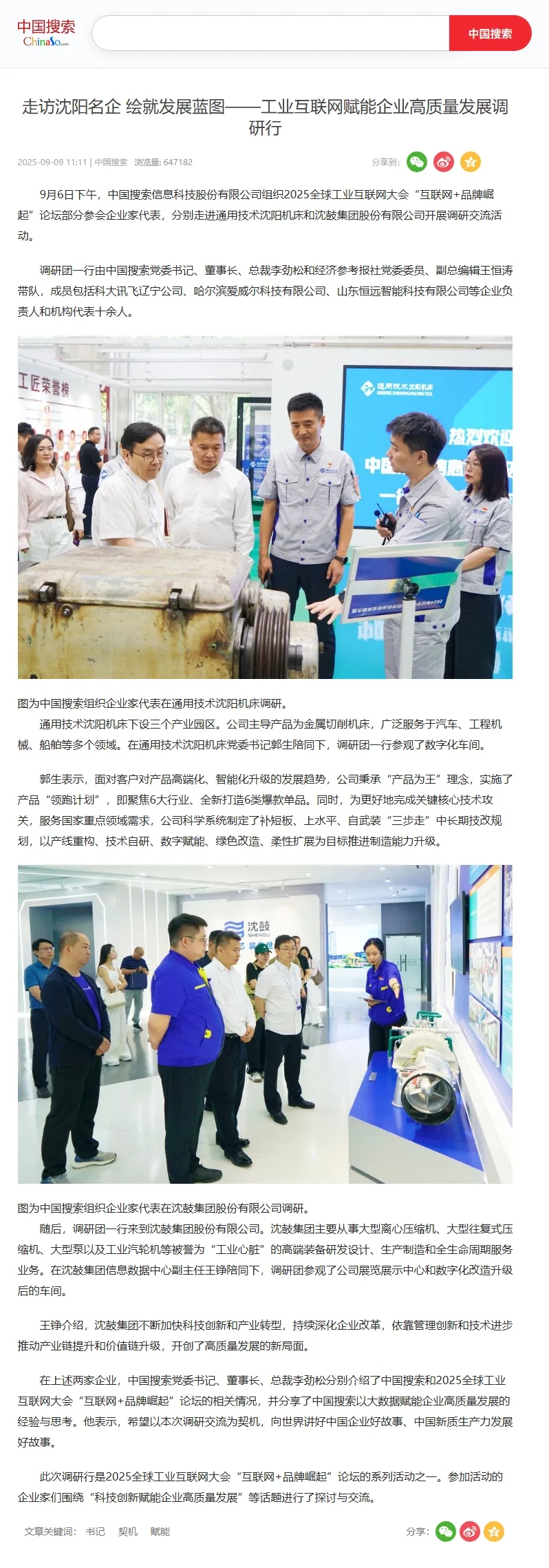新浪財(cái)經(jīng)在《走訪沈陽名企 繪就發(fā)展藍(lán)圖——工業(yè)互聯(lián)網(wǎng)賦能企業(yè)高質(zhì)量發(fā)展調(diào)研行》中將沈鼓列為“沈陽名企高質(zhì)量發(fā)展”的調(diào)研重點(diǎn)對象。報(bào)道提到,沈鼓以工業(yè)互聯(lián)網(wǎng)為核心抓手,在生產(chǎn)效率提升、服務(wù)模式創(chuàng)新等方面取得顯著成效,其發(fā)展藍(lán)圖為行業(yè)提供了“工業(yè)互聯(lián)網(wǎng)賦能高質(zhì)量發(fā)展”的可借鑒經(jīng)驗(yàn)。